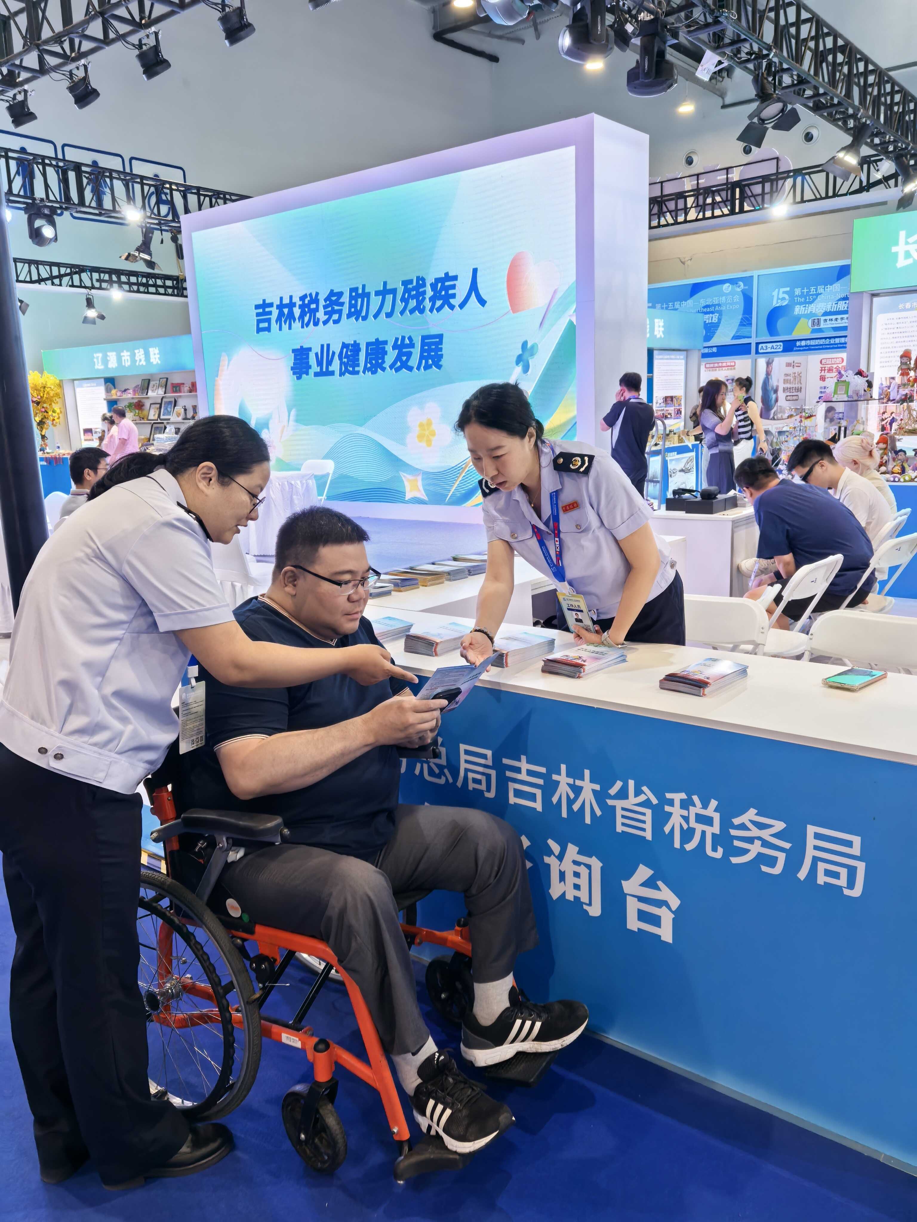 展区还设立了国家税务总局吉林省税务局和吉林省残疾人联合会的政策咨询台,为现场观展者宣传按比例安排残疾人就业的税收优惠政策和残疾人就业创业优惠政策。